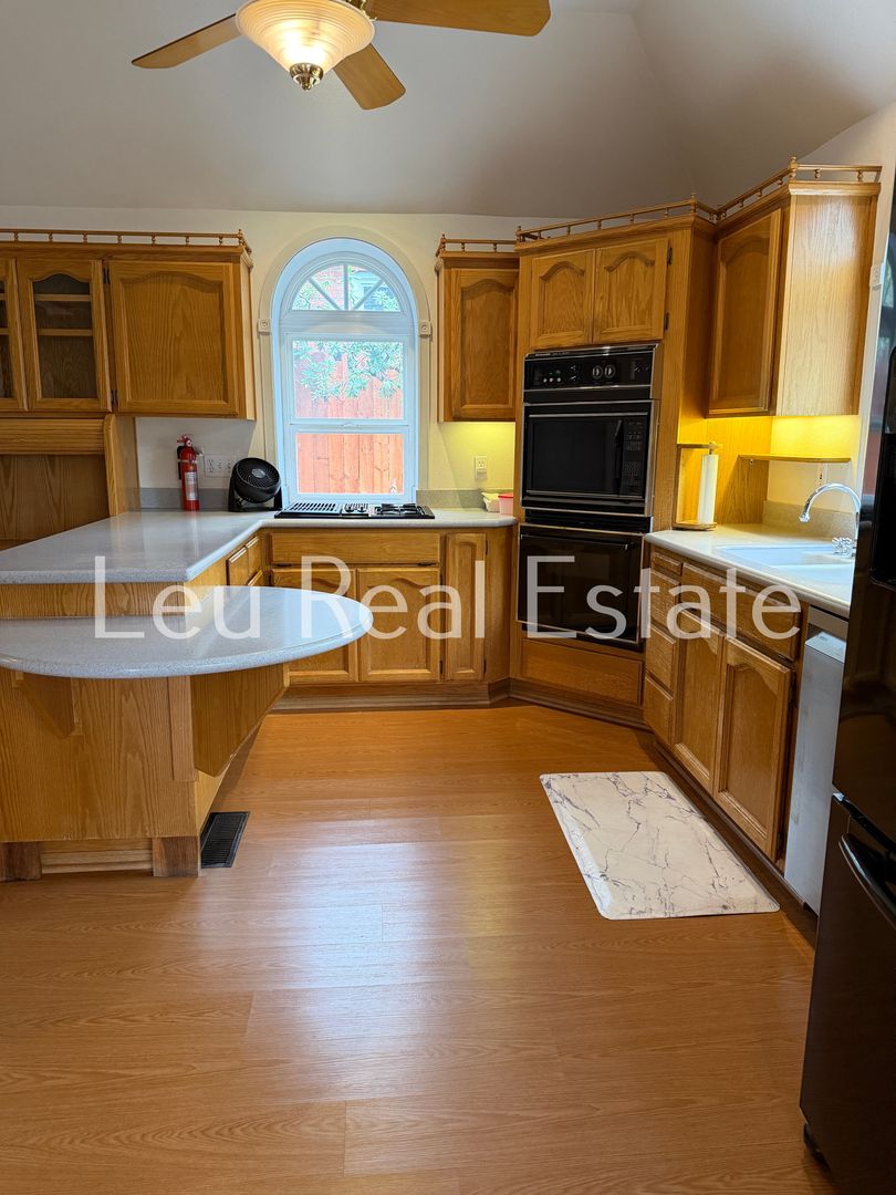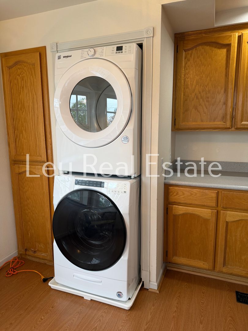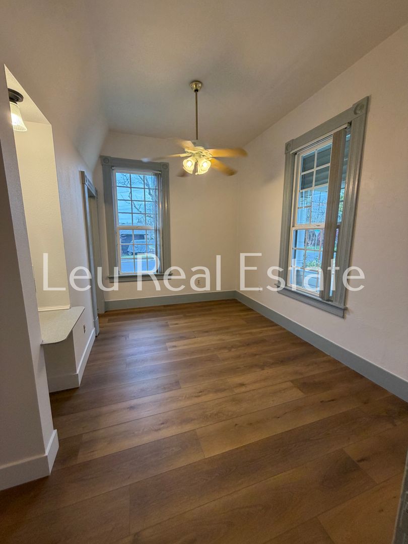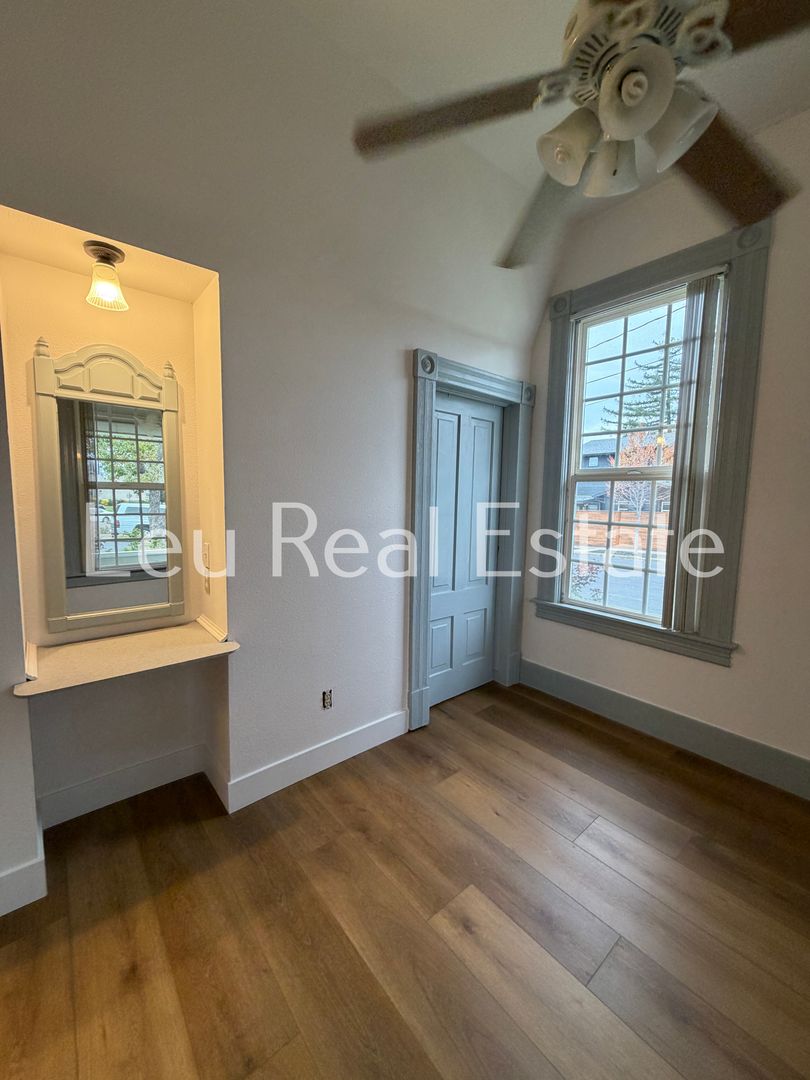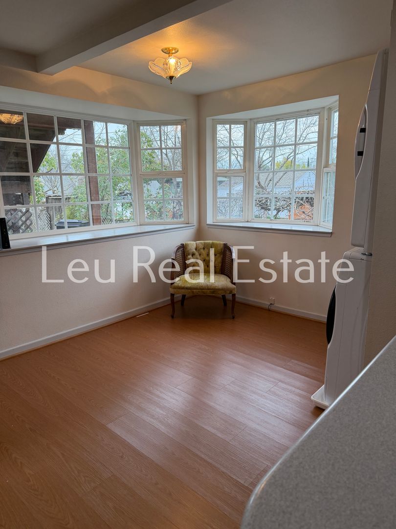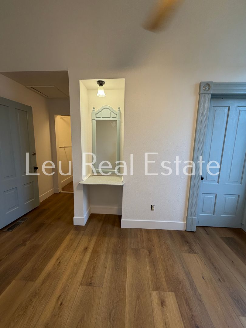 Charming vintage home in Old Roseville, 2br/2ba, lower floor below small attic unit. All hard surface wood/vinyl laminate flooring. Spacious living area with modern kitchen, featuring double oven, dishwasher, refrigerator and warm wood cabinets, with solid surface countertops. Laundry area with stackable full size washer & dryer has space for breakfast nook. High ceilings and abundant windows bring in lots of natural light. Both bedrooms have an adjoining bathroom, one with tub/shower and one with walk-in shower. Landscape maintenance provided. Street parking. Tenant responsible for PGE gas bill and pays a monthly flat fee of $100 for water/sewer/trash and $150 for electricity. Small pets negotiable.
