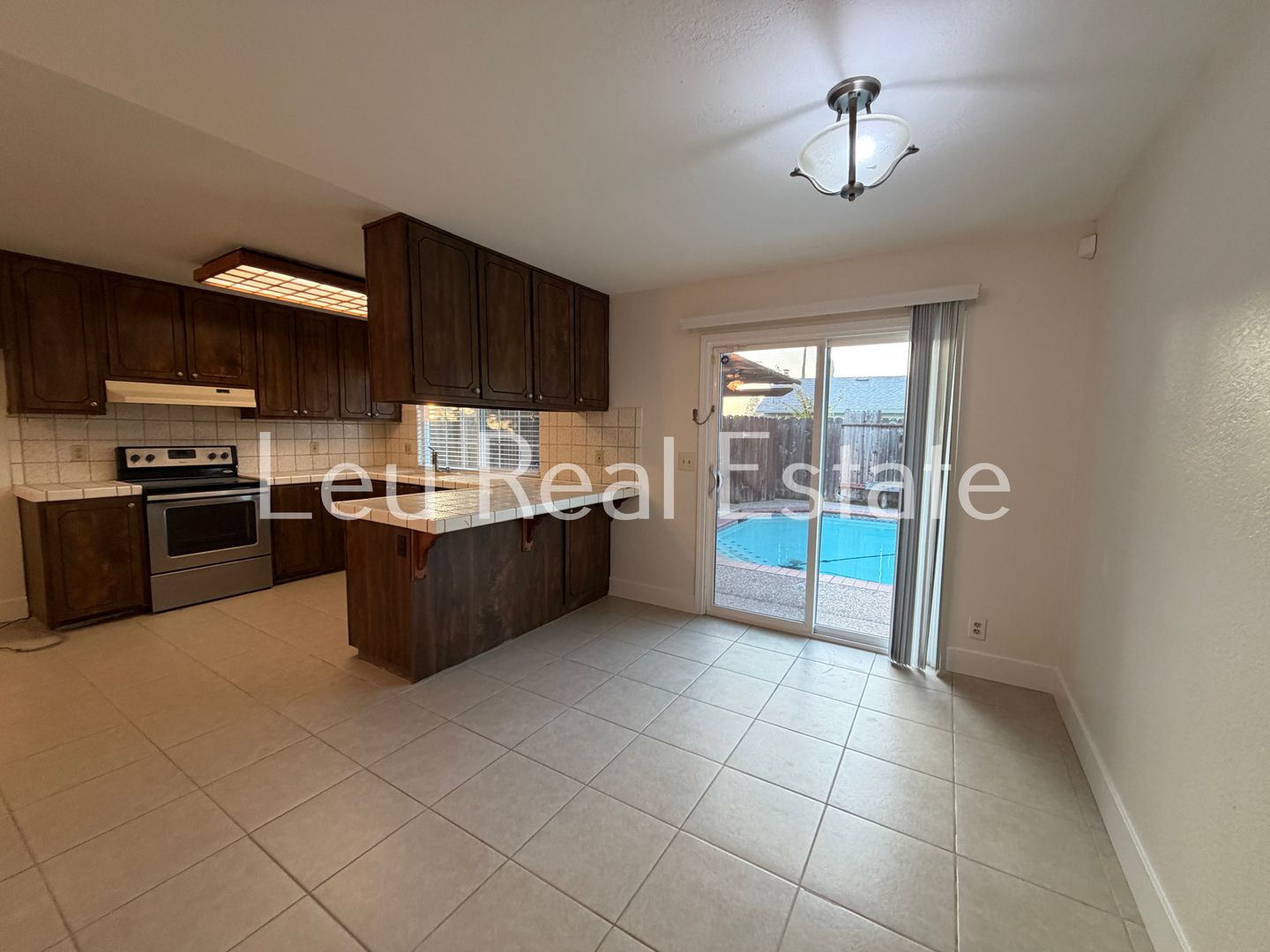 Nice 3 bedroom 2 bath home with a pool. Kitchen has tile counter tops, with ample cabinet space and opens up to large dining and family area with tile floors. Living room with fireplace. All floors are hard surface with vinyl plank in the Bedrooms. Indoor laundry room.