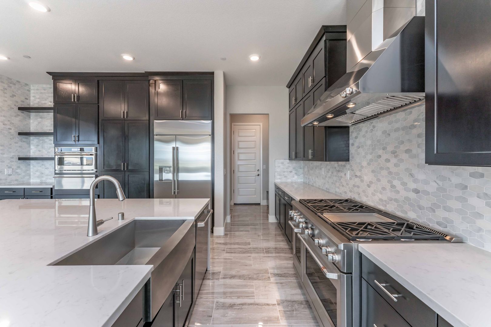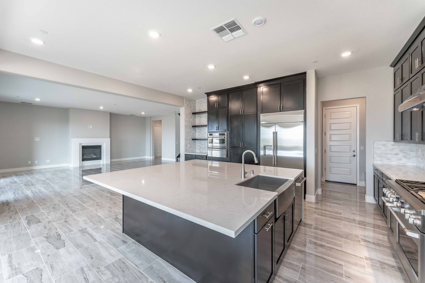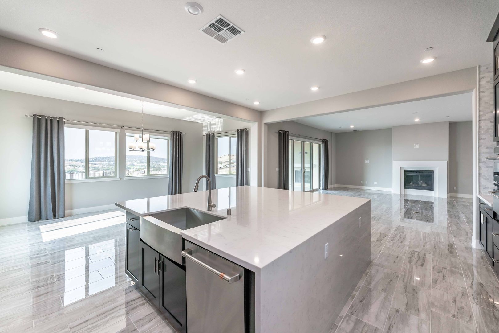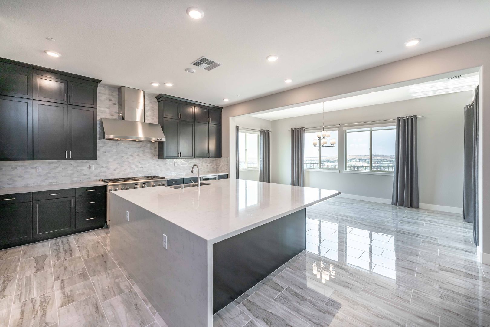 The home features elegant flooring throughout, an inviting great room with a cozy fireplace, and abundant natural light in every room. The gourmet kitchen is a chef's dream, equipped with a 6-burner range, wine cooler, built-in refrigerator, large pantry, warming drawer, and a spacious island. The formal dining room is bathed in natural light, thanks to its surrounding windows.