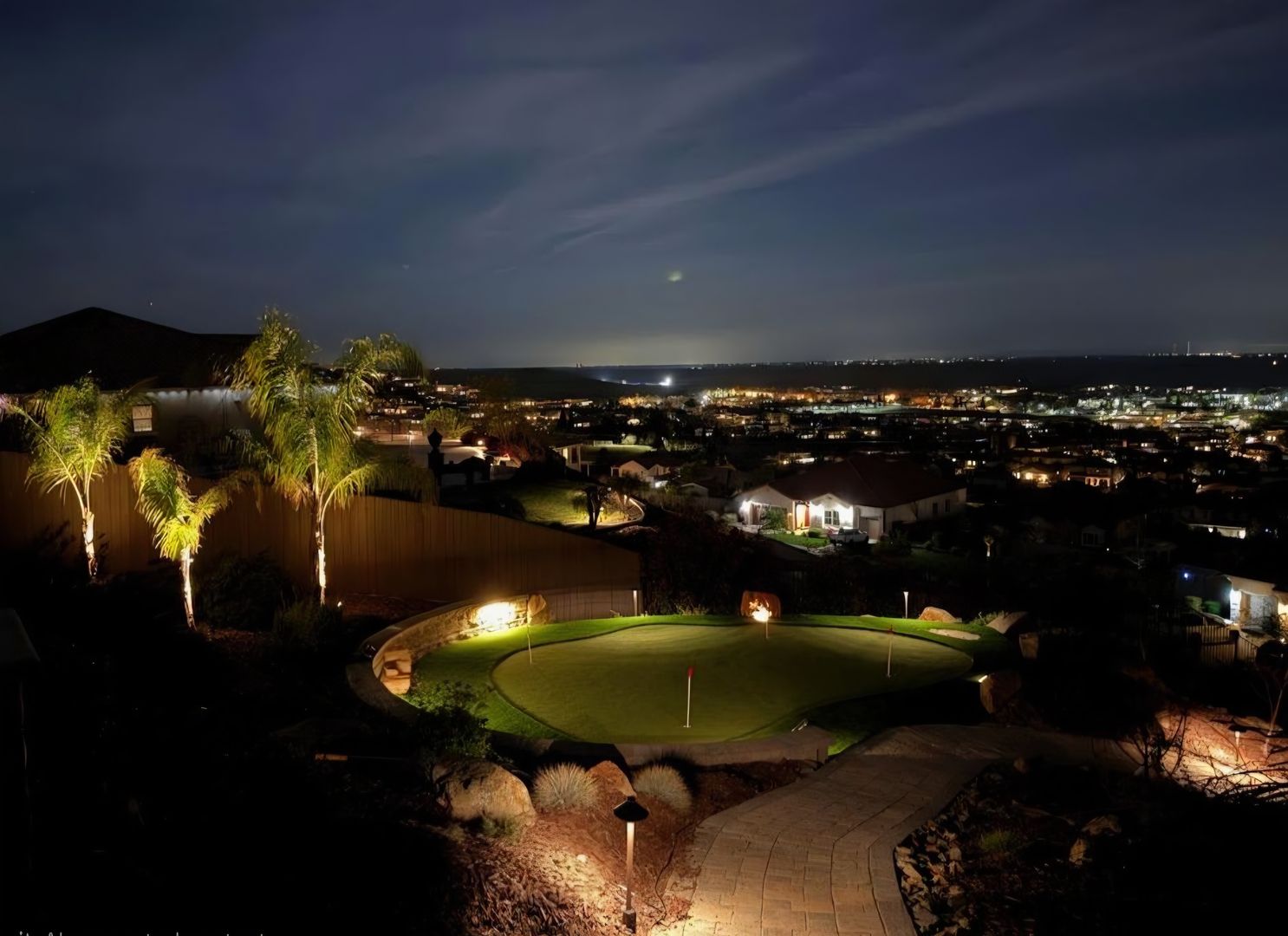 Outdoor amenities include a covered patio with an outdoor fireplace, putting green, beautifully landscaped gardens, garden boxes, walking paths, and peaceful sitting areas.